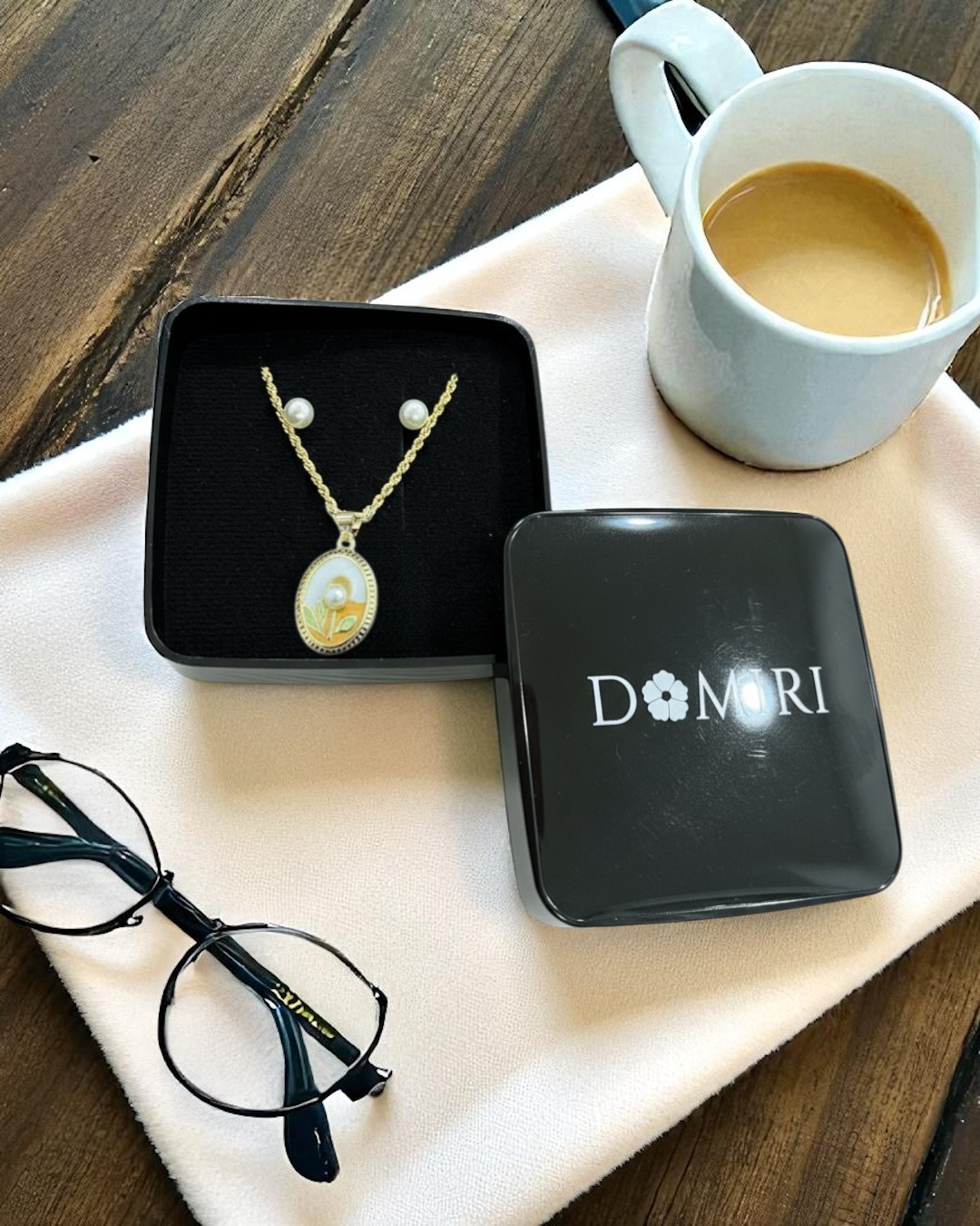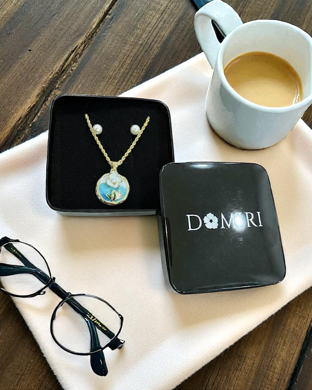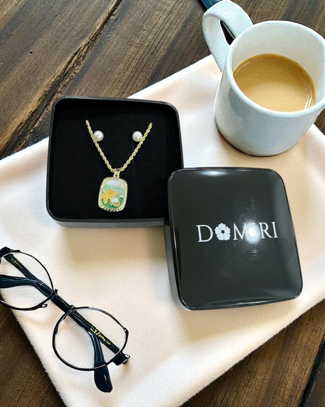 Una colección inspirada en la naturaleza y la serenidad de los detalles hechos a mano. Cada collar combina un dije esmaltado con delicados relieves florales, tonos suaves de verde, azul y dorado, y un sutil toque perlado que aporta luminosidad. Las piezas cuelgan de cordones trenzados color verde oliva, creando una armonía orgánica perfecta entre textura y color.